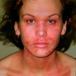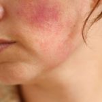 Наиболее проблематичным видом аллергической реакции на коже лица является холодовая эритема. Эти пятна очень легко отличимые по внешнему виду – эритема возникает немногочисленно – одним или двумя ограниченными по краям пятнами. Очертания эритемы неровные.
