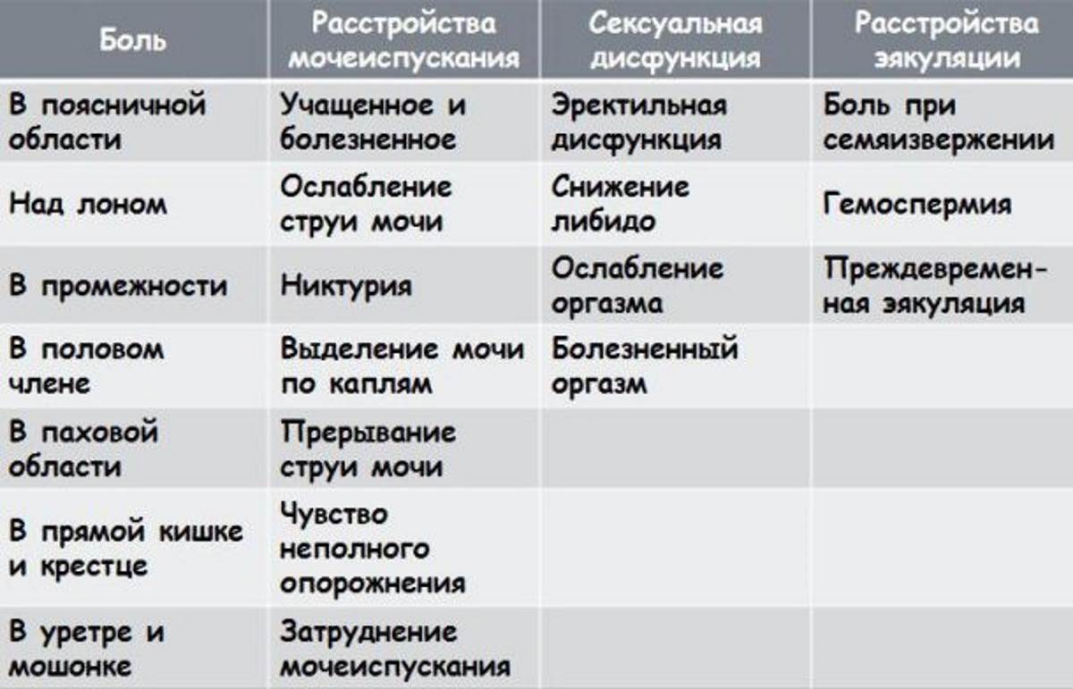 Симптомы простатита у мужчин